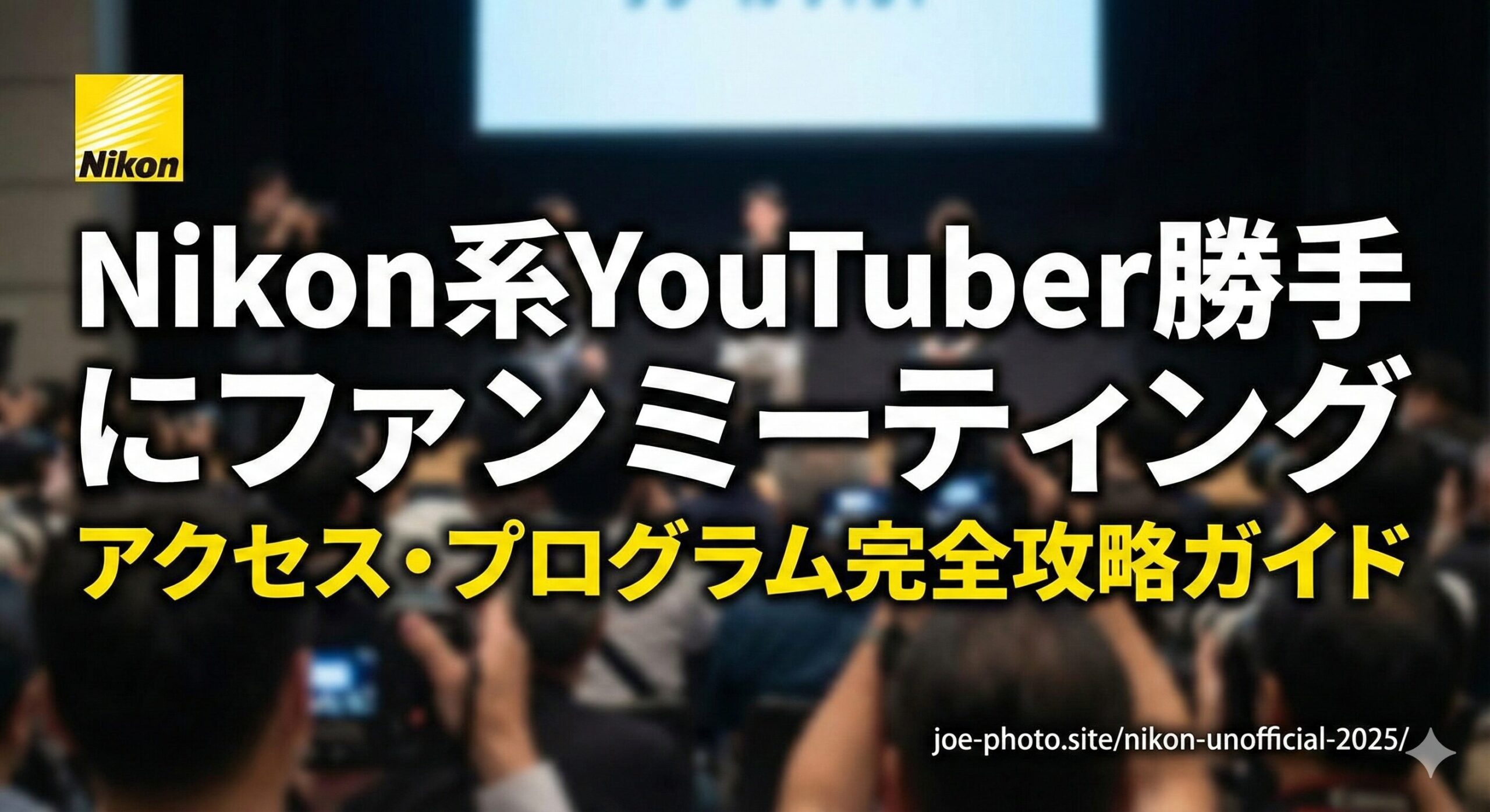 ARCHIVES 2025年10月 Nikon系YouTuber勝手にファンミーティング|アクセス・プログラム完全攻略ガイド 2025.10.20 イベント joe-306 Joe's Photo 【アイテム情報】Amazonプライム感謝祭で買うべき写真撮影に役立つアイテム 2025.10.03 アイテム joe-306 Joe's Photo